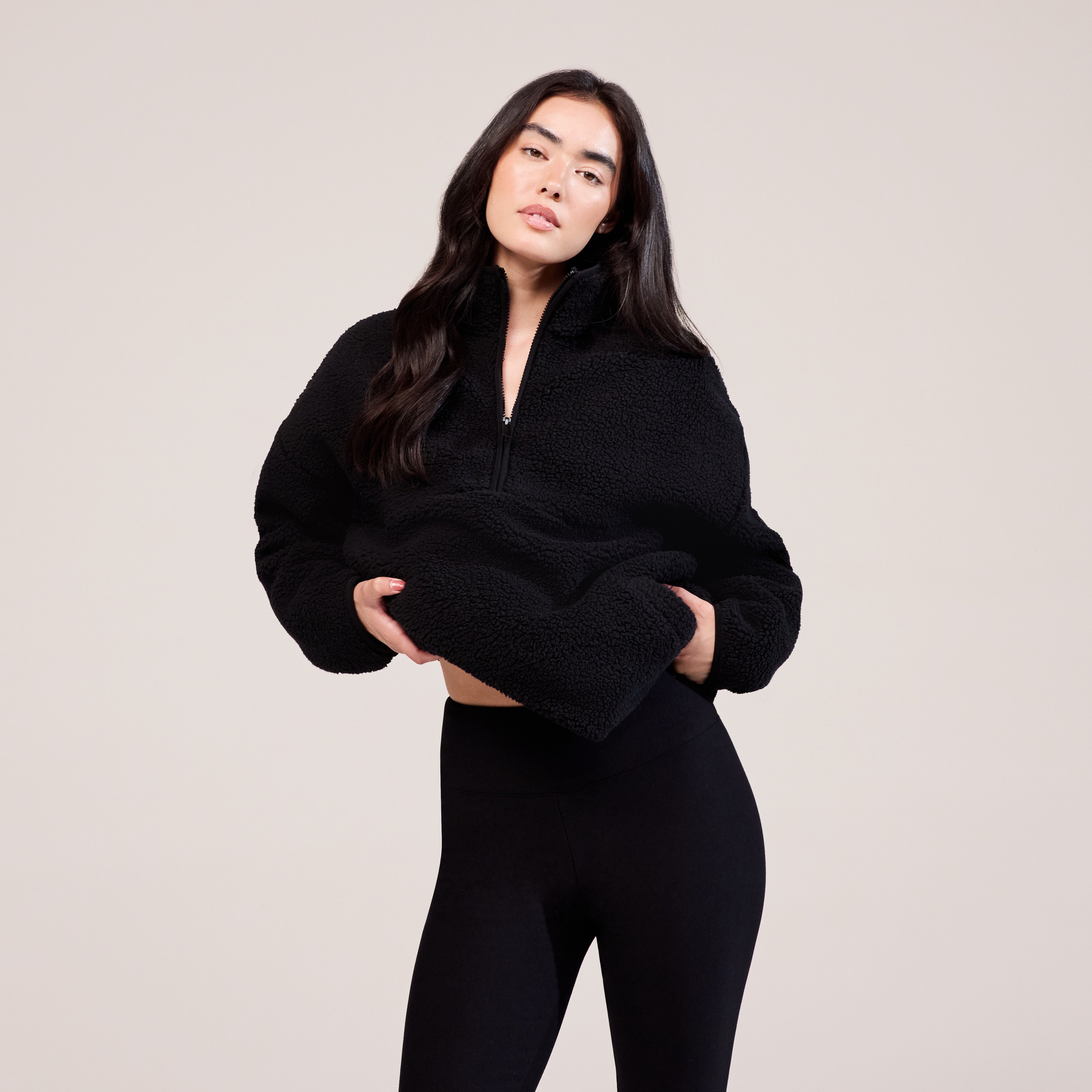 Uncompromising cosiness comes with the Borg Quarter-Zip. Elevating style for any look and giving that final layer of warmth. Crafted with a super soft, fleece-lined Borg fabric in a relaxed fit, this quarter-zip can slip on over any outfit for added comfort. Finished with elevated design features, including a high, turtle-style neckline, subtle front pockets, and branded zip details.